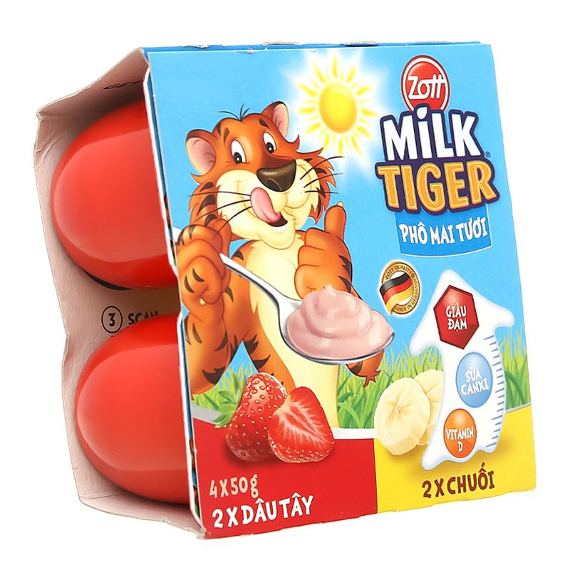 Phô mai tươi Zott Milk Tiger Dâu - Chuối 4 x 50g