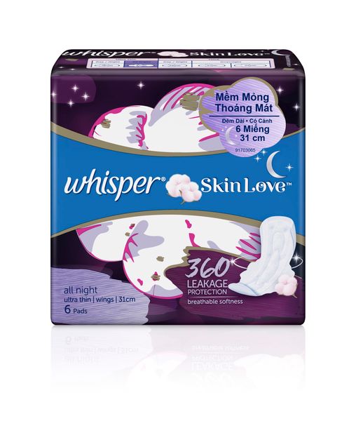 Băng vệ sinh Whisper Mềm mỏng 31cm Đêm 6 miếng