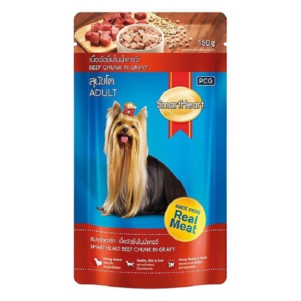 Thức ăn Chó SmartHeart vị Bò miếng nấu xốt 130g