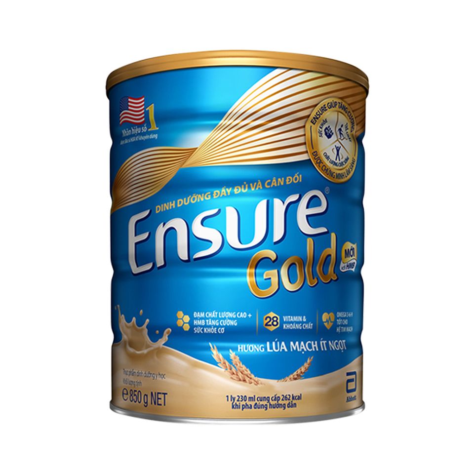 Sữa bột Ensure Gold ít ngọt hương lúa mạch 850g